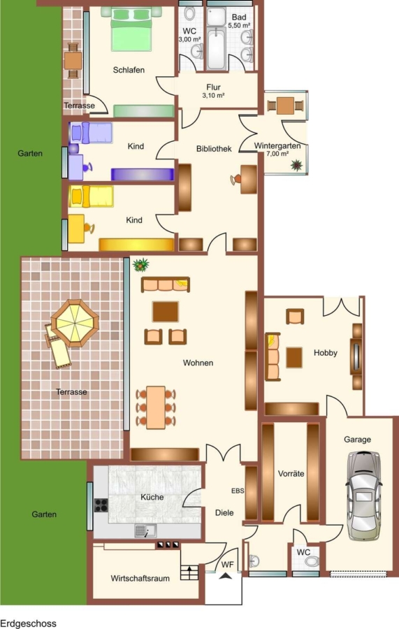 Zwei Kinder,- Gästezimmer, die Bibliothek und nicht zuletzt der kleine aber feine