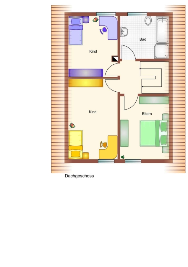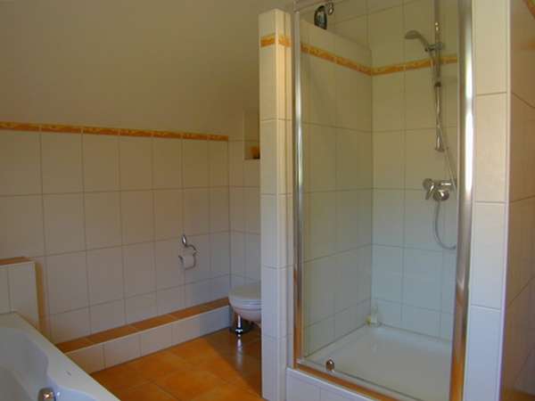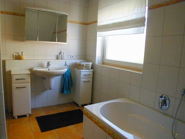 Im Obergeschoss verfügen Sie neben den drei Schlaf,- bzw. Kinderzimmern über ein schickes lichtdurchflutetes Wohlfühlbad mit Tageslichtfenster.
