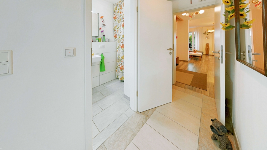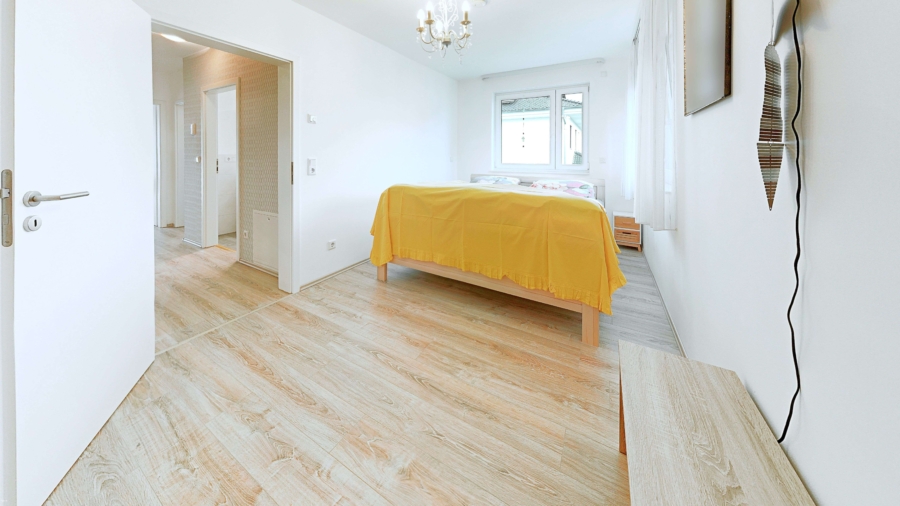 Das Obergeschoss überzeugt mit einer gelungenen Raumaufteilung, drei Schlafzimmer bieten flexible Nutzungsmöglichkeiten, ob als Kinder-, Gäste- oder Arbeitszimmer. Das großzügige Tageslicht Badezimmer ist mit Dusche und Badewanne ausgestattet und schafft mit seiner modernen Gestaltung eine angenehme Wohlfühlatmosphäre.