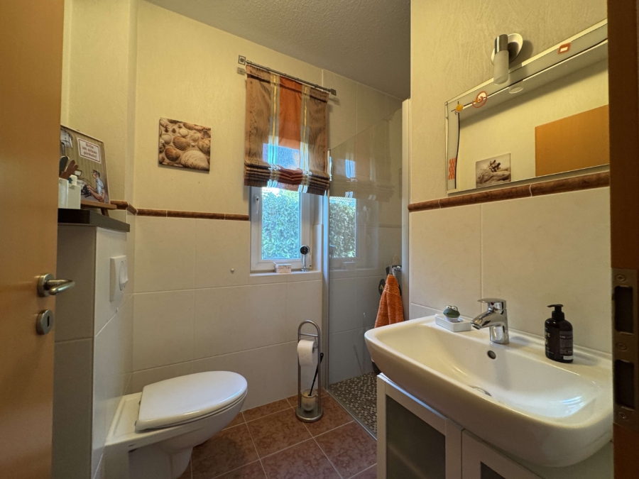 Beim Betreten des Hauses gelangen Sie in die Diele mit Garderobe, und von hier in den riesigen Wohn,-Essbereich mit offener Küche (kpl. rd. 55 m² groß). Sollten Sie lieber eine geschlossene Küche wünschen, kein Problem, mit wenigen Handgriffen lässt sich eine Zwischenwand installieren. Die Terrasse und nicht zuletzt der pflegeleicht angelegte Garten werden Ihnen gefallen. Auf dieser Ebene befindet sich das Gäste-WC mit Duschbad.