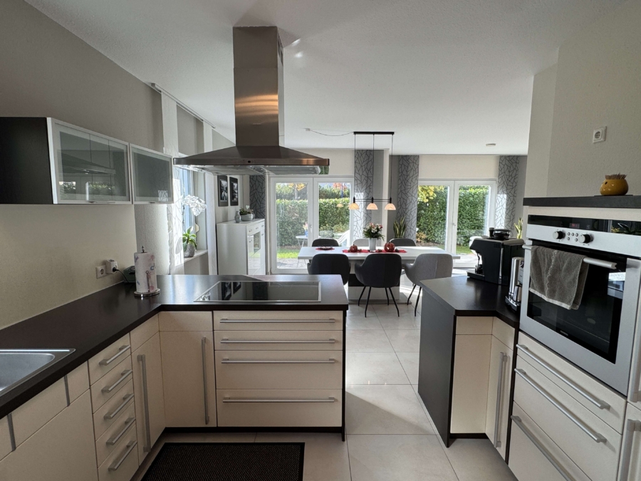 Durch die hintere Türe gelangen Sie ebenfalls in den Garten und zum modernen Gartenhaus.