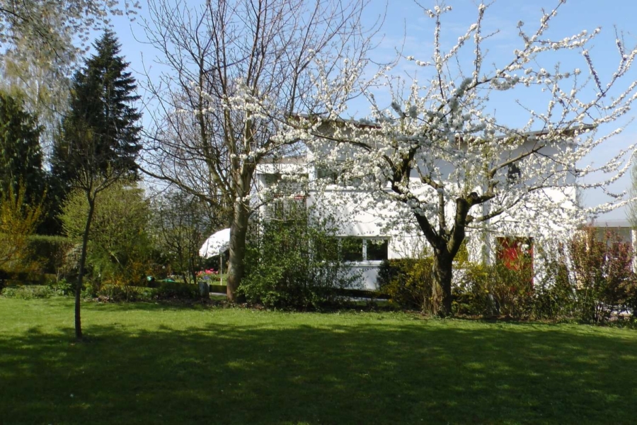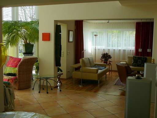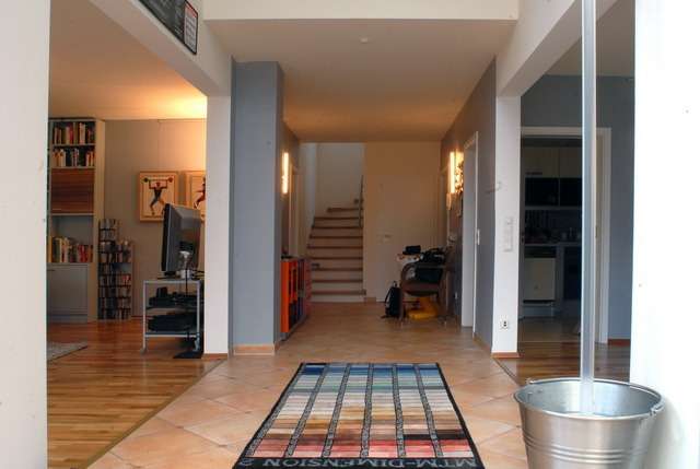 Die hier befindliche Galerie ist ideal geeignet als Bibliothek mit besonderer Atmosphäre (Lichtkuppel und sichtbarer Dachkonstruktion). Drei Schlafräume und das riesige lichtdurchflutete Wohlfühlbad werden Ihr Herz höher schlagen lassen…Fußbodenheizung ist ebenso selbstverständlich wie der Bodenbelag aus Holzparkett(Nussbaum).
