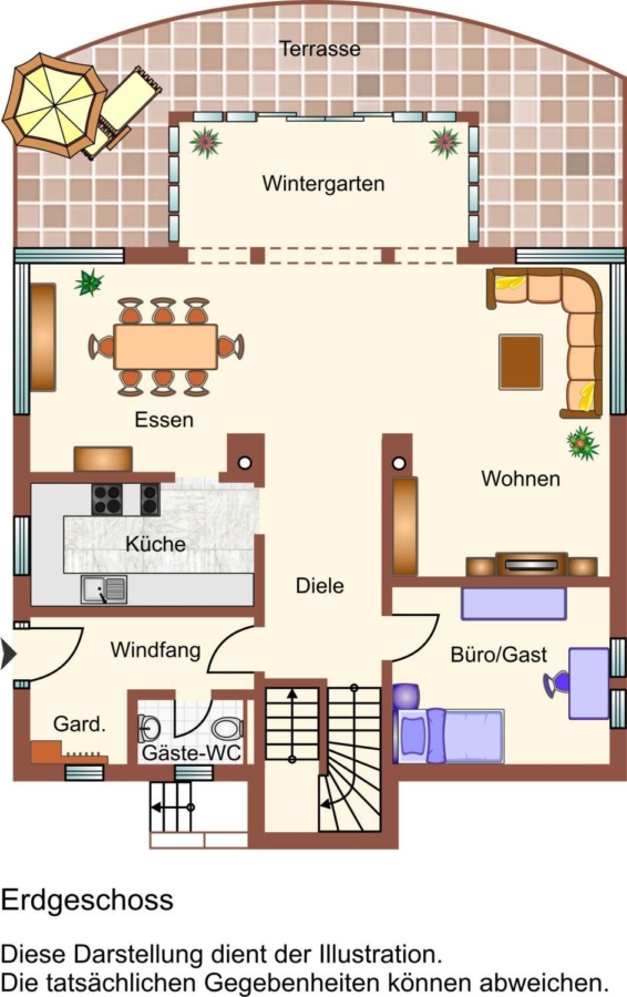 Über den Wohnbereich gelangen Sie in den Wintergarten (traumhafte Verglasung über die gesamte Haushöhe,) auf die Terrasse und in den pflegeleicht angelegten Garten.