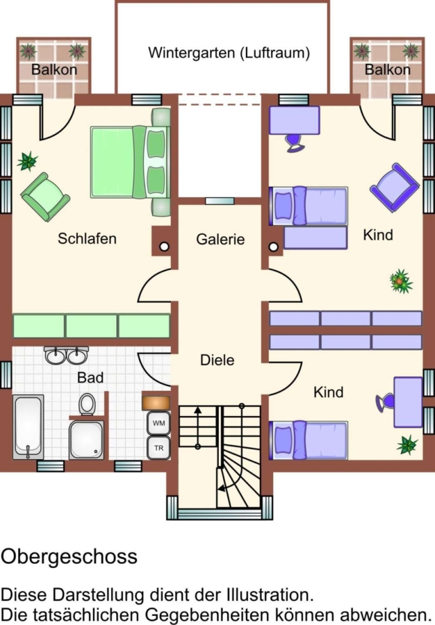 Über den großzügigen offenen Treppenaufgang gelangen Sie ins Obergeschoss.