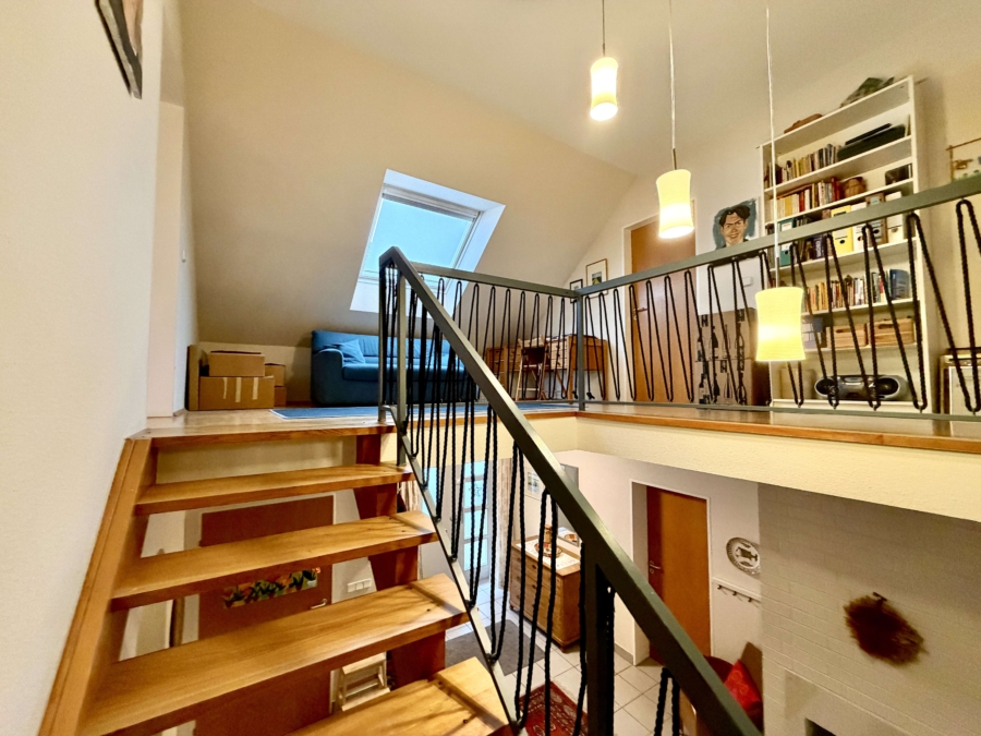 Auf dieser Ebene stehen zudem zwei weitere Zimmer zur Verfügung, die flexibel als Schlaf-, Arbeits- oder Gästezimmer genutzt werden können. Ergänzt wird das Erdgeschoss durch einen Frühstücksbalkon Badezimmer mit Tageslichtfenster, ein Gäste-WC sowie einen praktischen Abstellraum. Über die offene Galerie gelangt man in das Obergeschoss, das mit seiner lichtdurchfluteten Gestaltung überzeugt. Hier befinden sich (fünf?! oder drei?!) Schlafzimmer (je nach Platzbedarf), die ideale Rückzugsorte für jedes Familienmitglied bieten. Ein weiteres Bad rundet den Wohnkomfort auf dieser Etage ideal ab.