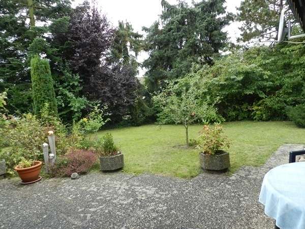 und in den pflegeleicht angelegten Garten mit herrlichem Baum,-und Buschbestand.